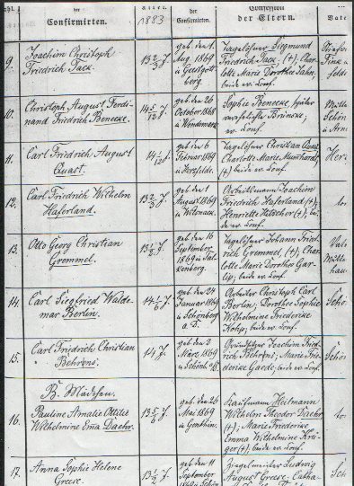 ● Christa Mummhardt, Taufzeuge 1885 bei Luise Dorothea Lomnitz in Schönberg